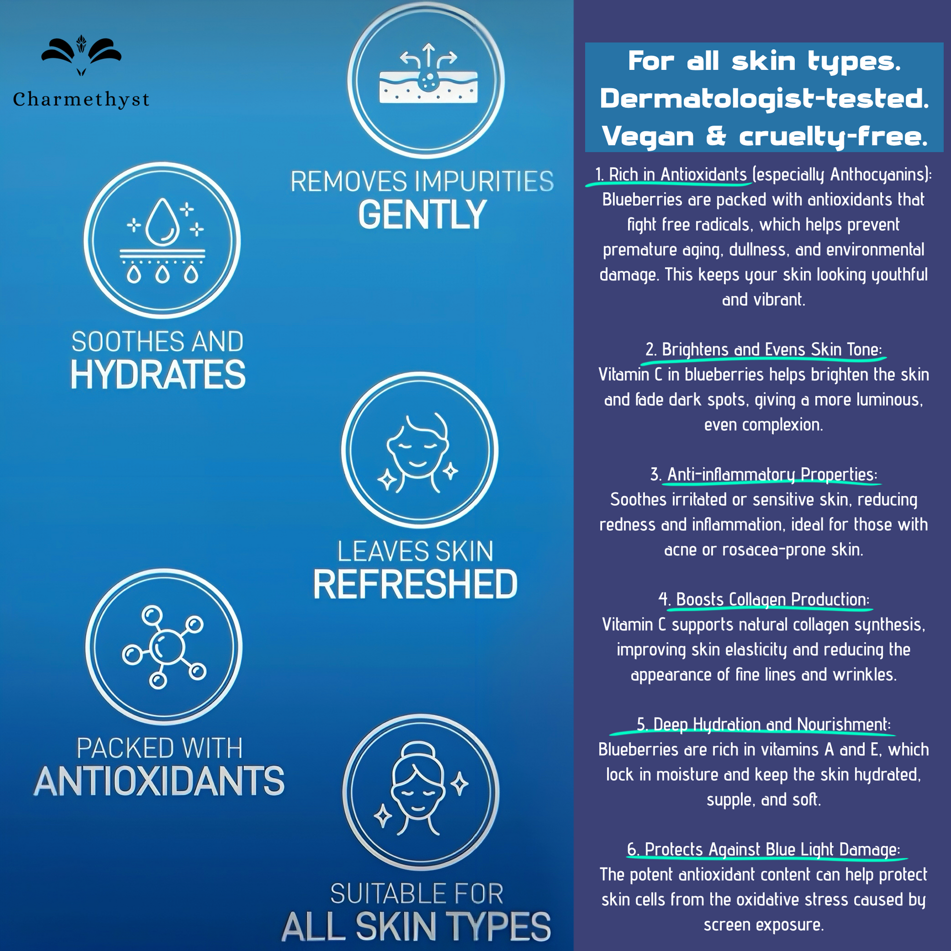 Drench your skin in Sapphire Dew and glow with the elegance of nature’s purest berries—only from Charmethyst.